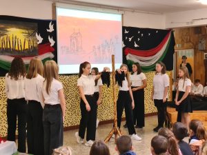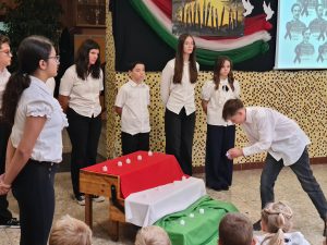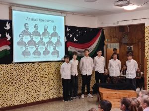 Október 6-án iskolánk hetedik évfolyamosai méltón emlékeztek meg az Aradi vértanukról, akiket Takácsné Medveczki Zsuzsanna és Sinkó Andrea tanárnő készített fel. Ez a nap nemzeti gyásznap is, az 1849-es szabadságharc leverését követő megtorlás csúcspontjára emlékezve, amikor Aradon kivégezték a 13 honvédtábornokot, Pesten pedig gróf Batthyány Lajos miniszterelnököt. Ezen a napon nemzeti gyászlobogókat tűznek ki, és az egész országban megemlékeznek a hősökről, gyertyát gyújtanak és koszorúznak.